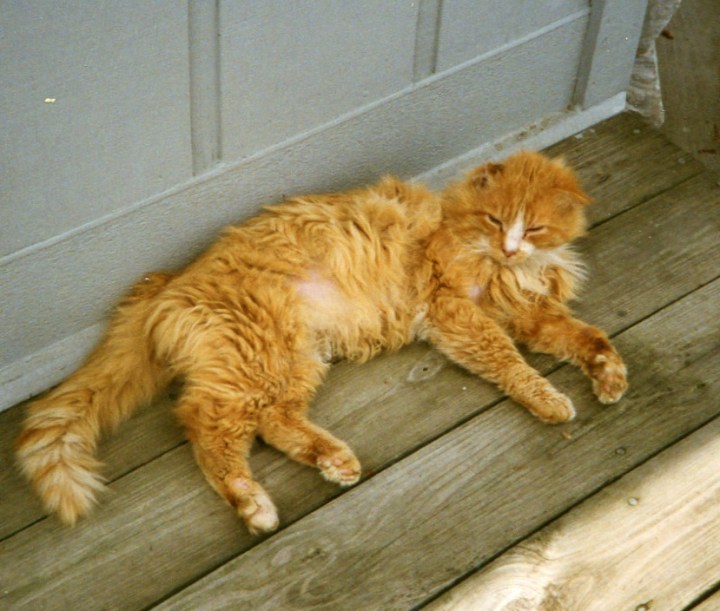 Before our New Jersey years we lived in a house on the north side of Indianapolis. While we were there we “adopted” two of the neighborhood cats that came to our door about to have kittens. Big Red, as we named him also came to our door for his regular dinner. He was a scraggly cat and looking at his ears and belly it was obvious that he got into a fight now and again. When we moved to NJ the new owners promised to continue to feed him. Here is to you Big Red. I hope you had a relatively good life.