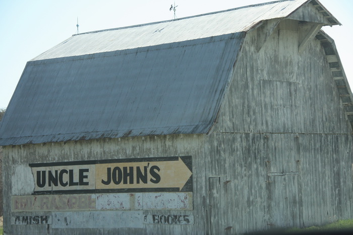 The old white barn with Uncle John’s on it is located east of Paoli in Orange County, Indiana. Thanks for the great pics. Karen