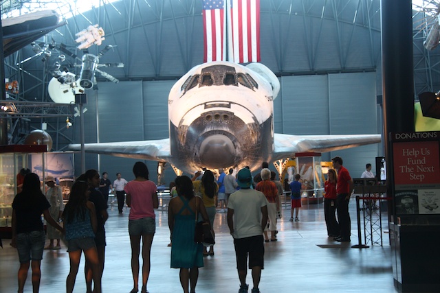 The second stop, besides lunch, was to the Smithsonian Air and Space Museum. Yeah, we finally made it to the D.C. area. This museum is a new one for us. It was built after our 1988 trip. The most viewed thing in the museum is the Space Shuttle Discovery. It was bigger and also cruder than I imagined. Yvonne said she thought the upper part looked like it was made from paper mache. The picture here is kind of eerie with the light shining on it. It reminded me of the movie “Close Encounters of the Third Kind”. Speaking of that they also had the model of that ship there and it is about 3 feet in diameter! That’s Hollywood for you. I also got another peak of my favorite plane and that is the SR-71 Blackbird. That plane has always fascinated me!