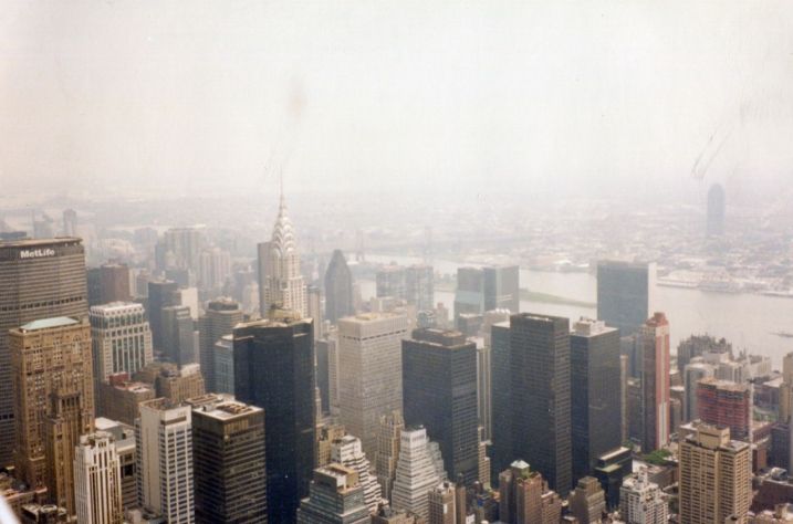 June 1998 — Here is a picture looking out of a window of the “Windows on the World” restaurant in the World Trade Center. It was our first of several visits there