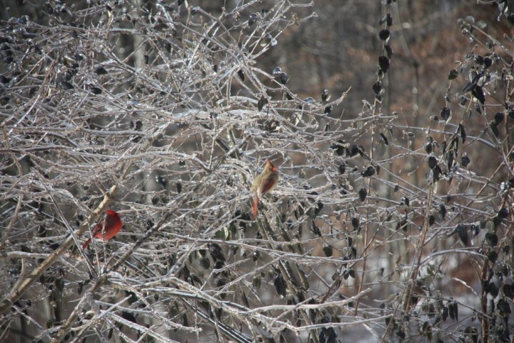Having My Say Cardinals in the Ice… Sometimes creative pictures just present themselves to you. That is if you take the time to see them.. :) This one came as a result of an ice storm last Spring. Share this: Share on Facebook (Opens in new window) Facebook Share on Pinterest (Opens in new window) Pinterest Share on X (Opens in new window) X Like Loading...