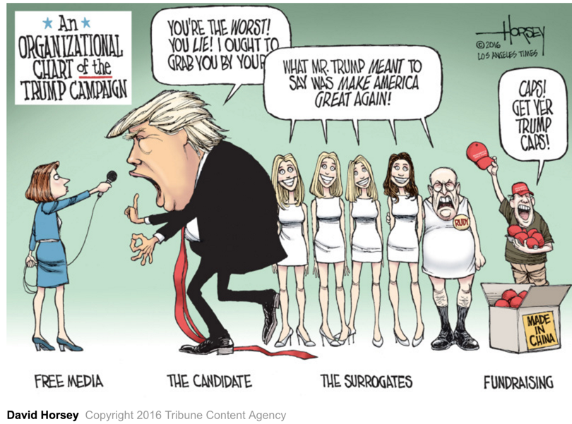I gotta take one last stab at this insane political season before it is over. David Horsey’s cartoon says it all to me. If he is elected I expect he would put his family in as his cabinet so they and tell everyone what he really meant. And then there is Rudy, he is kind of like the loyal dog of the family.