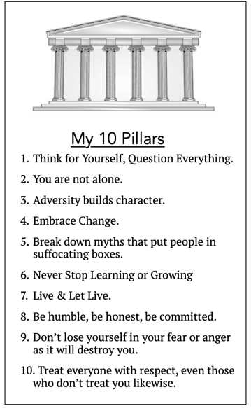I must admit that I sometimes don’t practice what I preach here on RJsCorner. As a background item, I spent a good deal of time in 2018 putting together my 10 Pillars as shown to the right. Following my hometown homeboy David Letterman, and also the Ten Commandments I was determined to keep the list at ten items only. That meant over a couple of months things were added and things were subtracted. The final form gelled about early October.