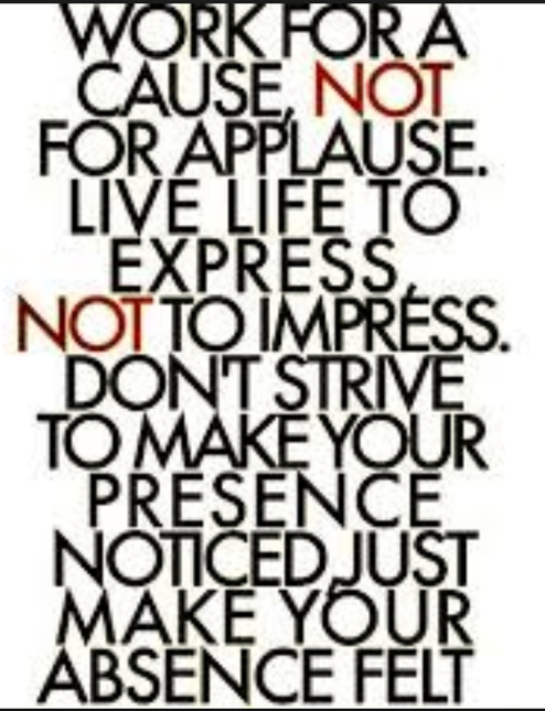 Don’t spend your life trying to impress others. Applause is a very short-lived thing. Just be who you are and that is mostly defined by the causes you take on to support. Be your own person. Think for yourself.