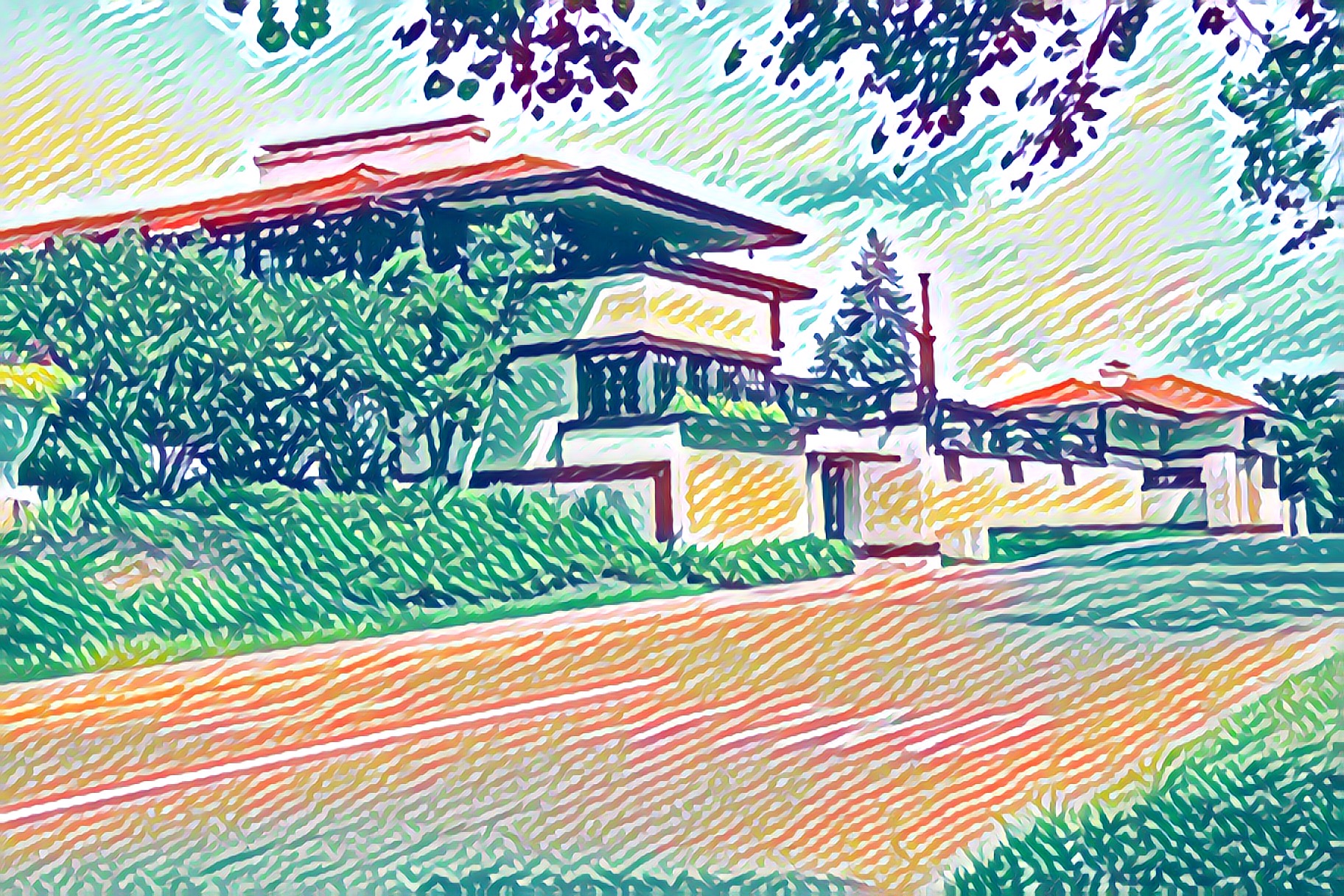 Augmented Realities #2 is based on a photo of the Westcott home designed by Frank Lloyd Wright. It is near Columbus Ohio. It was built in 1908. In the 1940s it was converted to apartments. Finally in 2004 it underwent a complete restoration to take it back to the original design.