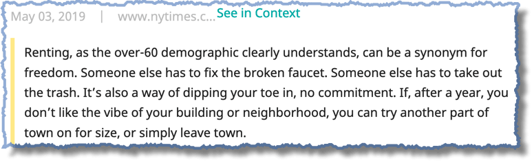 - Since you are no longer tied to a geographical area renting gives you a level of freedom you have never had before.