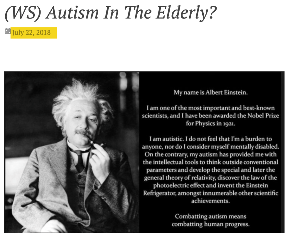 When I got a recent comment from one of my regular viewers I realized it was time for another post about Autism. This one is about senior citizens who are autistic but are almost always undiagnosed. A recognized statistics is that there are over a million of us that are autistic in the Baby Boomer generation alone.