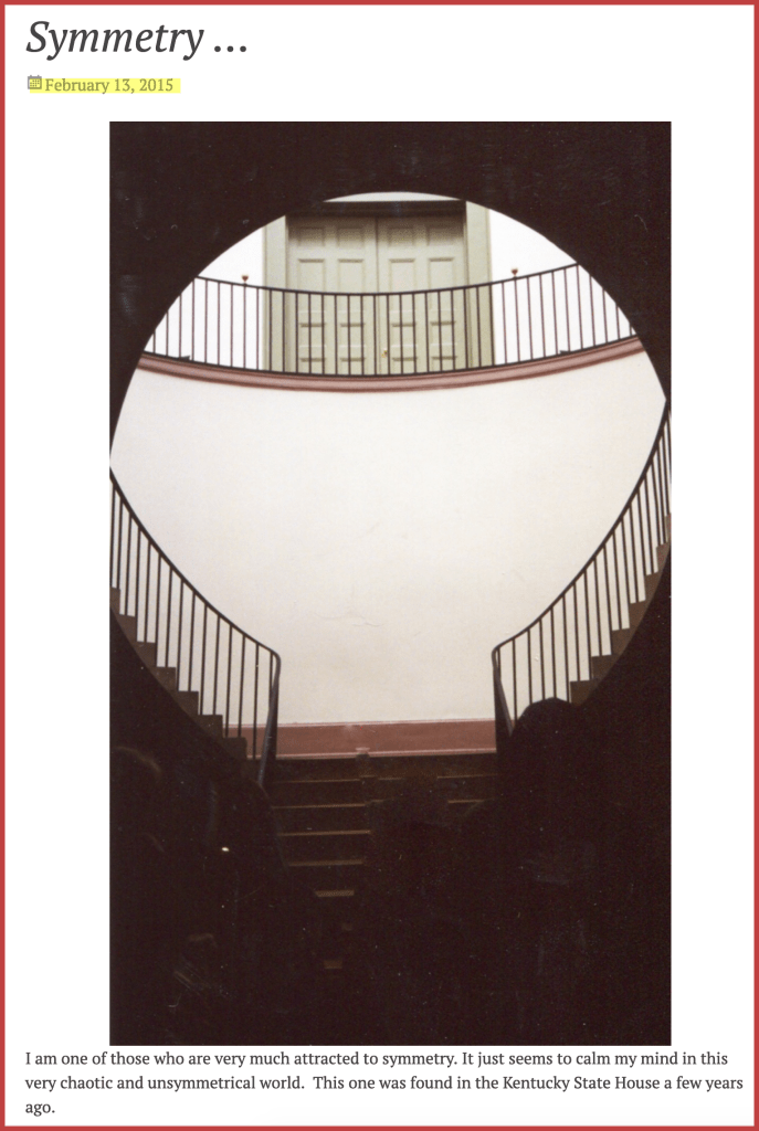 When I found this post from 5 years ago this week, it grabbed my attention even more than it did then. Symmetry just seems to slow my frantic mind down. It gives me peace in these hectic days. So, here it is again…