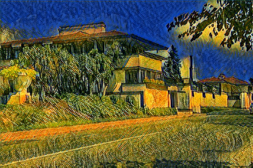 For this Artsy Saturday I give you the Frank Lloyd Wright house near Springfield Ohio. I have been trying out about a dozen apps to find just what I want. This picture is a combination of two different ones. Looks kinda nice in a Van Gogh type way, but I need more practice yet. I give this about a 50/50 between abstract and realism.