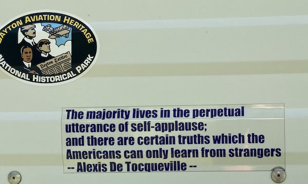 Have we come to a place in our existence where “we” doesn’t exist anymore? I just won’t accept that possibility but many others are claiming just that. Excessive individualistic culture was something the Alex De Touqueville noted about Americans when he visited our country in 1834. His main description in his now famous book Democracy In America was that we were consumed with self. I have that phrase on the side of my µRV as shown here.