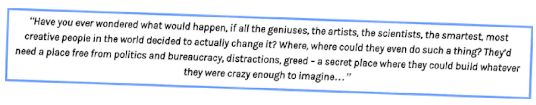 It seems obvious that they need to be free from all the politics and bureaucracy to actually accomplish much. When most of us see the devastating gridlock that is strangling our democracy we would never even consider becoming part of it. I recently watched a Ken Burns documentary about the Roosevelts (Teddy and Franklin) that mentioned that the aristocracy of those times would never consider getting down in the mud of politics. I think the same thing is still happening today. Smart creative people have higher visions than that.