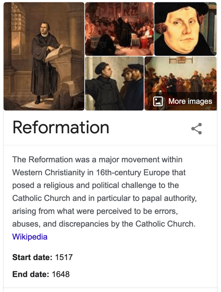 When Martin Luther started the first reformation in 1517 he did so as shown in the graphic here, because of errors and abuses by the Catholic Church. At that time the Catholic Church had power unimaginable today. Since my extensive studies of church history I have come to the conclusion that maybe that was not such a good idea. A serious internal re-alignment might have done the same thing without fracturing the church into 40,000 pieces it is today. It seems that when a group of people within almost any Christian establishment disagrees with others they now deem in necessary to split off into yet another version of church. 40,000 times this has happened and for the most part, because of unimportant reasons.