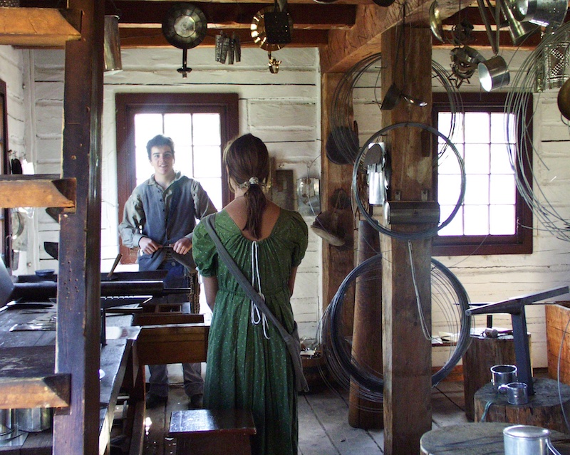 I still remember that day as if it were yesterday. We were at Ft William, an historic Canadian fort on the north shore of Lake Superior. I was in one of the many shops around the fort watching the young man in the photo above demonstrating silversmithing. I had my camera in hand ready to take his picture when a young lady, probably in her early twenties came in the door.