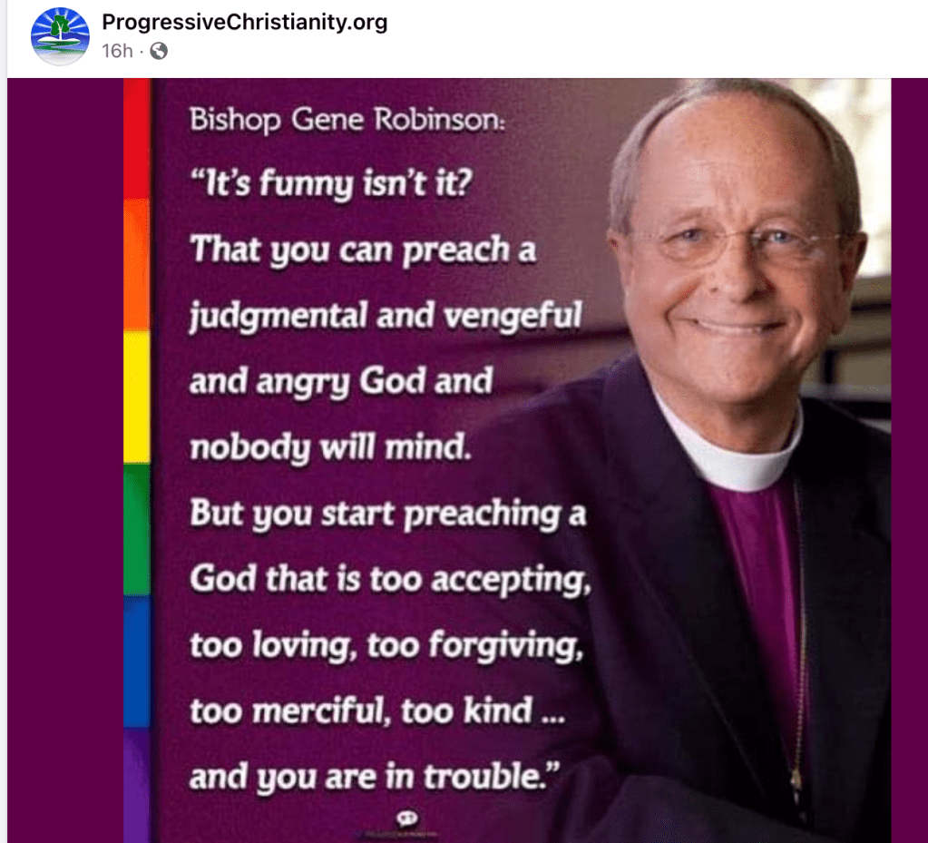 Of course, Gene Robinson is not one of those. Instead, he is from the progressive wing of Christianity that is growing daily. I am finding that I am also in that group.