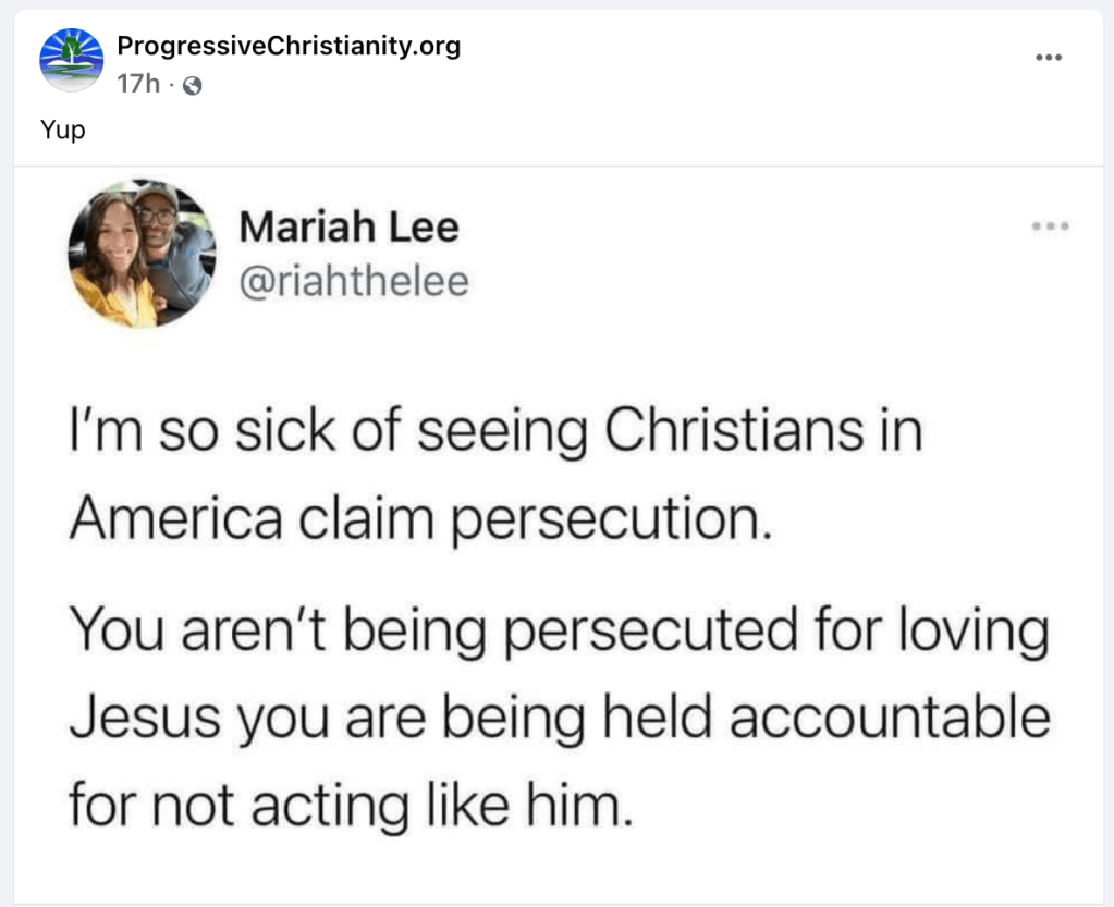 I think the words above from Marian Lee, who self-identifies as a Progressive Christian, deserve to stand on their own, so I won’t add too much here.
