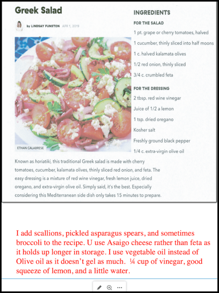 I know this is “Picture Saturday” but I do think this pictures kinda fits here. One thing about RetComLife (Retired Community Life) is that the food just doesn’t have much tang or spice. I miss that! Part of my adjusting here is what am I going to do to keep “spice in my life” figuratively and literally. 😎 I’m trying to figure that out now, but one way is to make a bowl of Greekish Salad every once in a while. So, that’s what I am about to do.