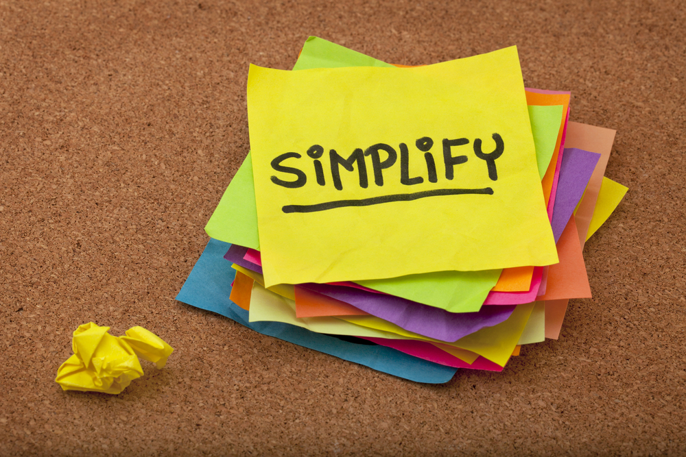 One way to simplify is to move from a 2400 square foot house to an eight-hundred-fifty SF apartment in a retirement community.