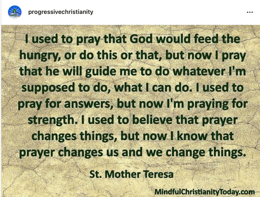 Don’t pray to God to feed the hungry. Instead, pray that God will guide you to do what you are supposed to do. I love that idea…