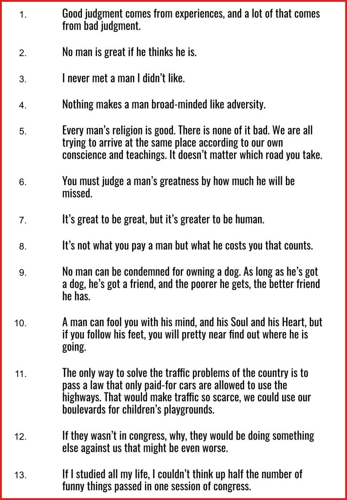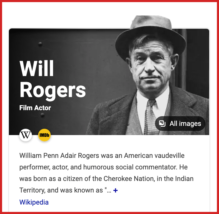 I have been reading Will Rogers since an early age. His words are kind of entwined into my psyche now. I have put out hundreds of posts about Will here on RJsCorner. If you don’t believe me, click here. 😎 Will lived through the Great Depression, so he saw a lot of suffering. He was also a Native American, so that was another opportunity to be glum about things. But, he was always able to look on the light side with his humor. I have had some pretty depressing circumstances throughout my life too, but Will helped to give me a saving sense of humor. He will always be my hero because of that.