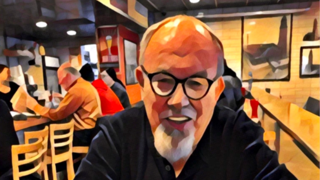 The picture is from a cafe adjoining the Cleveland Westside Market. We were there on a Wednesday but found the market closed! But at least we had a very nice breakfast. I will have a long “A Picture Is…” post about that coming up soon. I think maybe it will be entitled “You Can’t Go Home Again” as I was surprised at what my friends had become. This picture was one of the first one I tried to morph into a caricature. I used it for a few months, but then got tired of it.