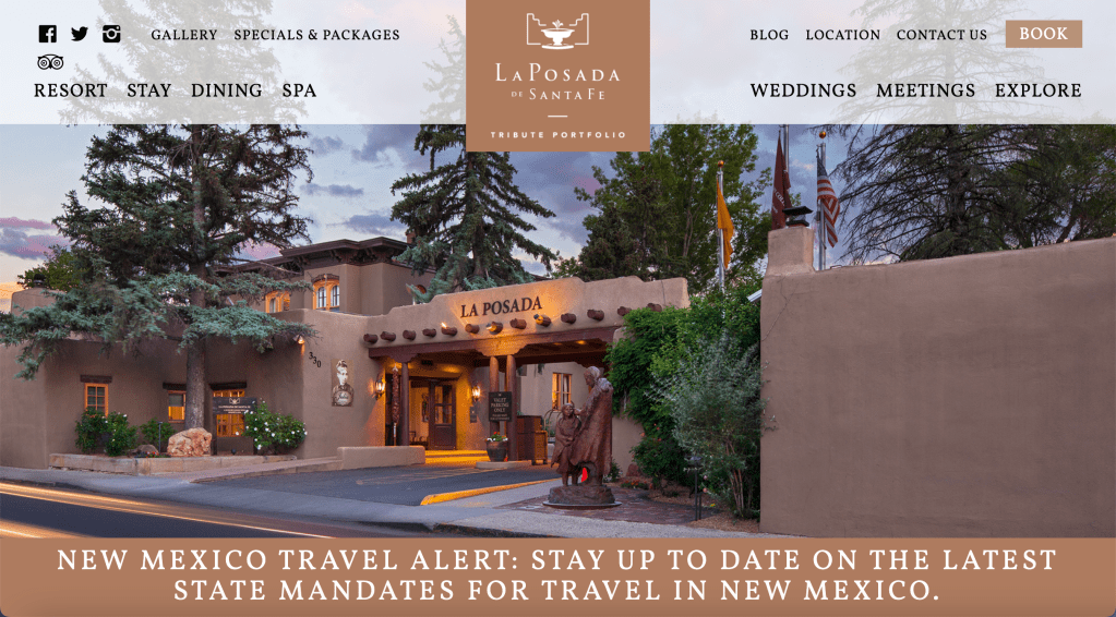 I don’t do this very often, but I am going to give full endorsement to the hotel I spent two days on my layover in Santa Fe, New Mexico. This is the second time I have spent multi-day visits to Santa Fe. The first time I came here my wife and I spent a few days at the La Fonda hotel which is just off the town square and probably the most famous hotel in old town. I didn’t want to stay there again as I wanted to reserve those memories exclusively for my late wife.