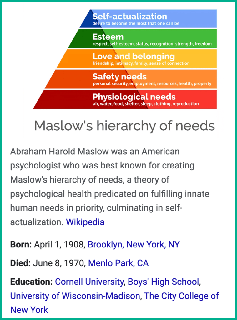 I read most of Maslow’s books as a young man trying to figure myself out. He certainly helped me understand much about life. His Hierarchy of Needs pyramid for a path to self-actualization helped me to understand basic human needs and obtaining happiness in your life.