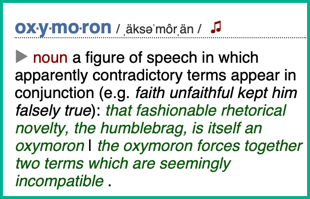 Oxymoron is a strange word. I really don’t know how it is pronounced, since I didn’t learn it until after I was deaf. I have been collecting some of these type things, and thought I would put them together here as some brain teasers.