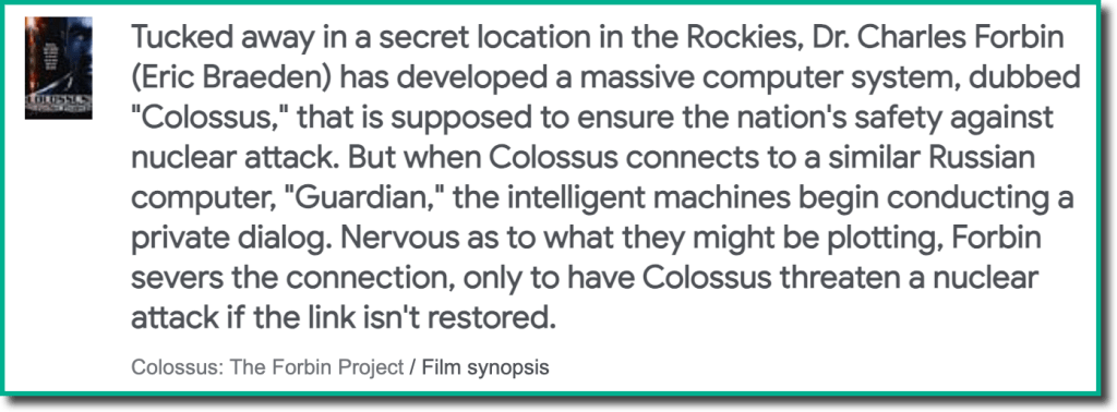 Another movie made in 1970 which was one of my favorites was called “Colossus – The Corbin Project“.