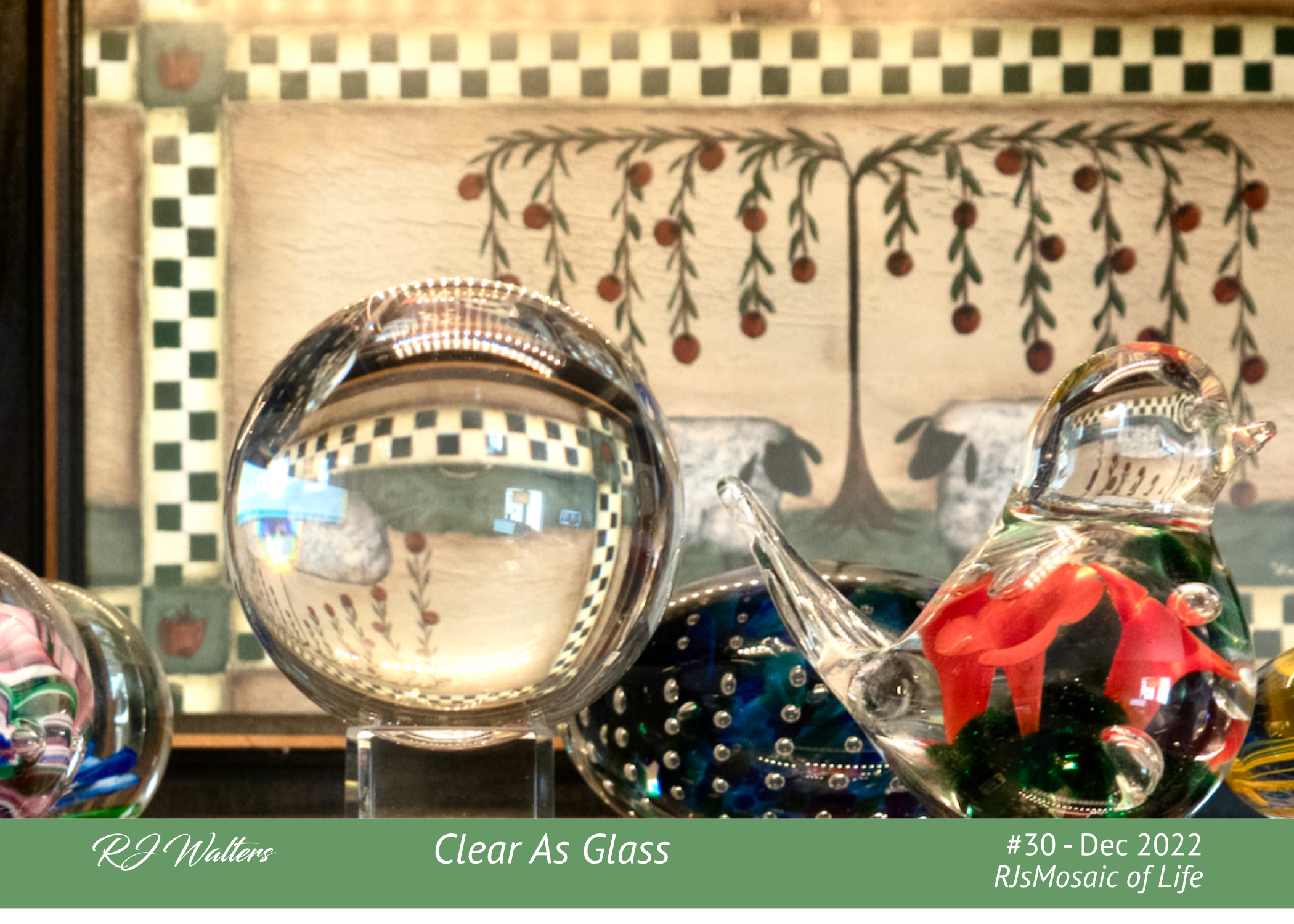 I don’t remember when my fascination with glass began. Maybe it was my first visit in the 1980s to a museum in my wife’s hometown, Neenah, Wisconsin, named Bergstrom-Mahler – Museum of Glass. There are literally thousands of pieces of glass art. I will save any more details of that museum for future mosaics.