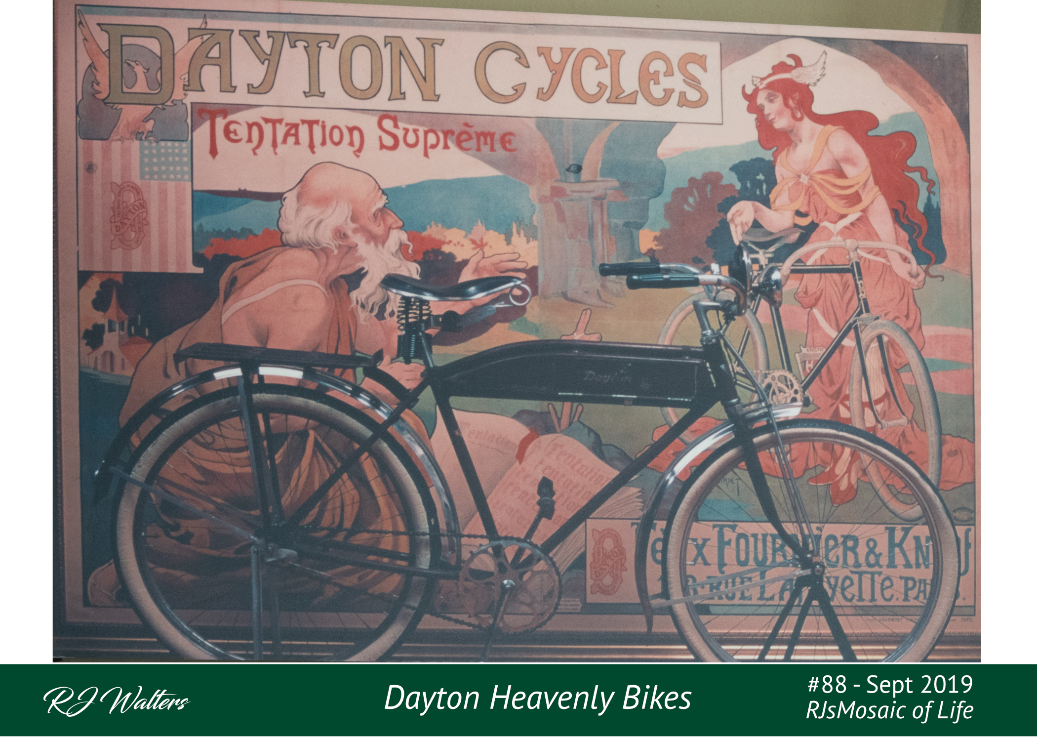 Having My Say Mosaic of Life #88 Dayton Heavenly Bikes In some ways, graphics a hundred years ago were not that much different than they are today. The mosaic above is proof of that. This picture was taken at the Wright Brothers National Museum in Dayton, Ohio. It is a place well worth a visit. Share this: Share on Facebook (Opens in new window) Facebook Share on Pinterest (Opens in new window) Pinterest Share on X (Opens in new window) X Like Loading...