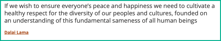 When I came across the quote from the Dalia Lama below, it immediately got my attention. I am convinced that each one of us who currently occupies this earth are unique unto themselves, but at the same time, we all share a common core of what it is to be human. That common core must reject excluding others that are not quite like us.