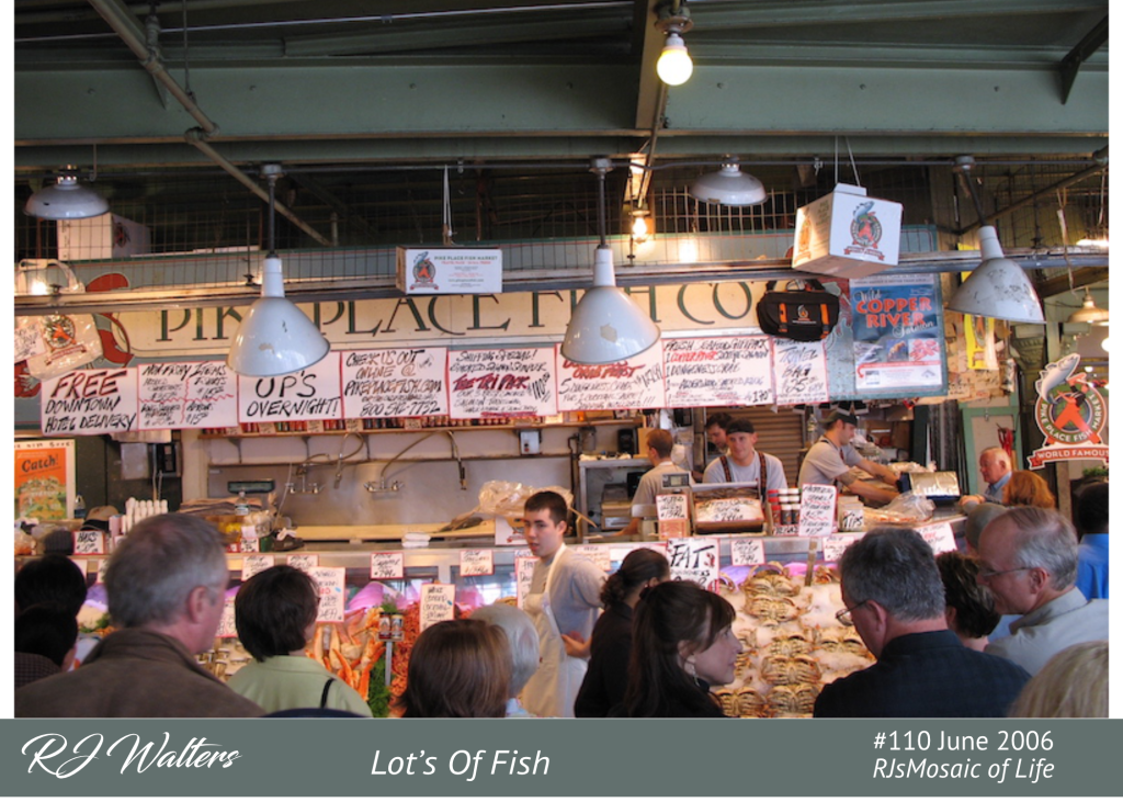 Anyone who has visited Seattle, Washington has likely been to the Pike Place Fish Company. After our Inner Passage boat trip to Alaska in 2006, we spent 4 days in the Seattle/Vancouver seeing the sites. I must admit, I enjoyed Pike Place more than the Space Needle. Yes, they do throw fish around like they do when you see them on TV. They do it up to 200/day!