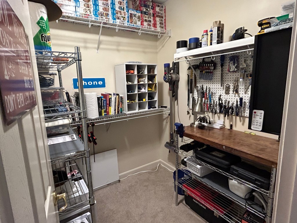 As I mentioned in previous posts I have built a replacement workshop in my RetCom apartment. This time, instead of 1800 sq ft, it is a 36 sq ft converted walk-in closet. It is nice but, of course, doesn’t compare to my dream shop of old. But it will have to do.