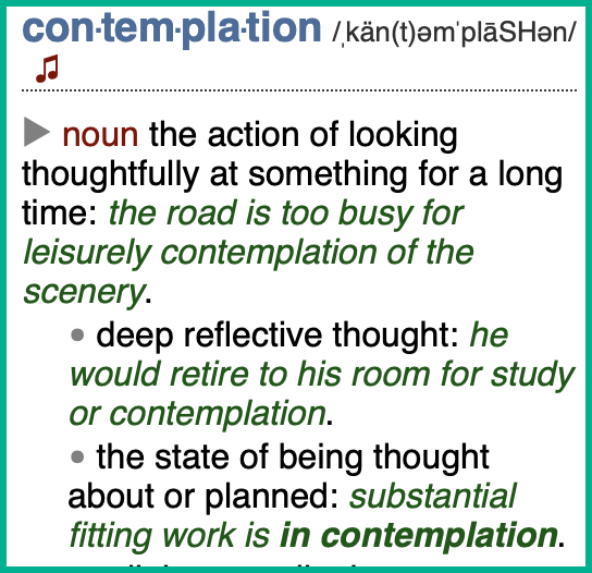 Whenever I think of the word “contemplation” I think about that chilly January morning (as illustrated here) in the year 2000 when I was standing at Battery Park in NYC and looking at the Statue of Liberty and Ellis Island. I don’t know how long I stood there, but I couldn’t stop thinking about all those whose first site of America was seeing that lady with her torch in the New York City harbor.