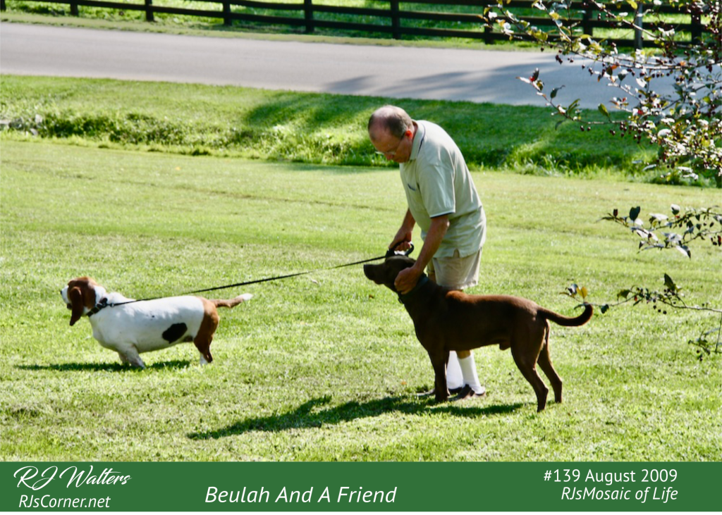 Now that I have decided to continue my “Mosaic of Life” posts, I need to fill in some blanks. The Basset Hound on the leach is Beulah. She had a fenced in yard that she roamed unleashed, but she did also love to explore other territories. She was my last pet, and my second favorite. (Sam, who was a dachshund, was my first personal pet was my first.)