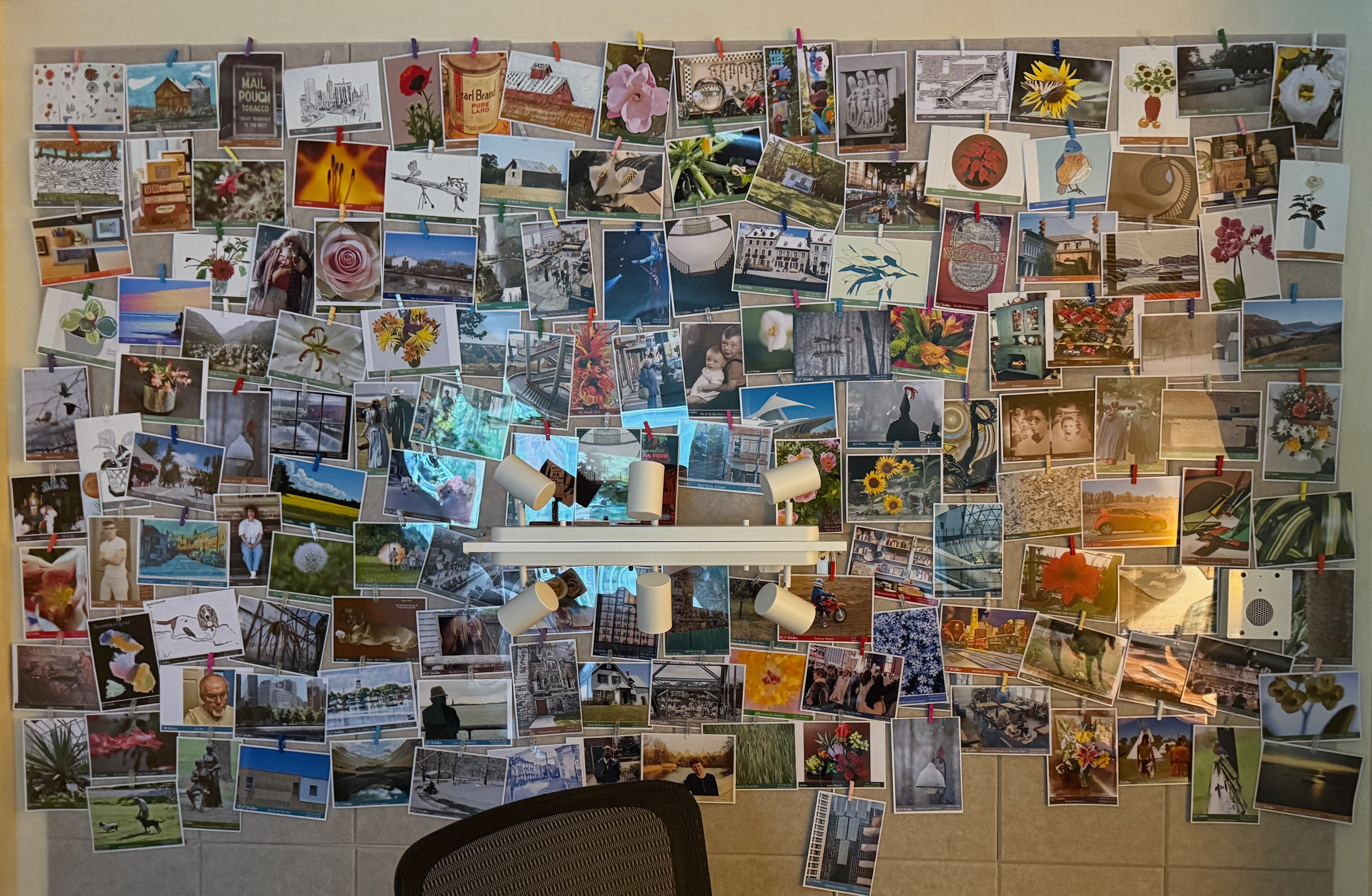 I often kid about it, but it seems that I have to do something at least three times before it is good enough. With that in mind, I want to show you the current status of my artsy projects. The above is my Mosaic of Life wall that was invented last year. This is the third time I have re-fabricated it. I think I finally got it right. It can now hold about 200 photos; the previous version could only hold about 150. That should be enough. Since my RetCom apartment is only 800 sq ft, my next project, if I live long enough, will likely mean repurposing this wall. We will see…