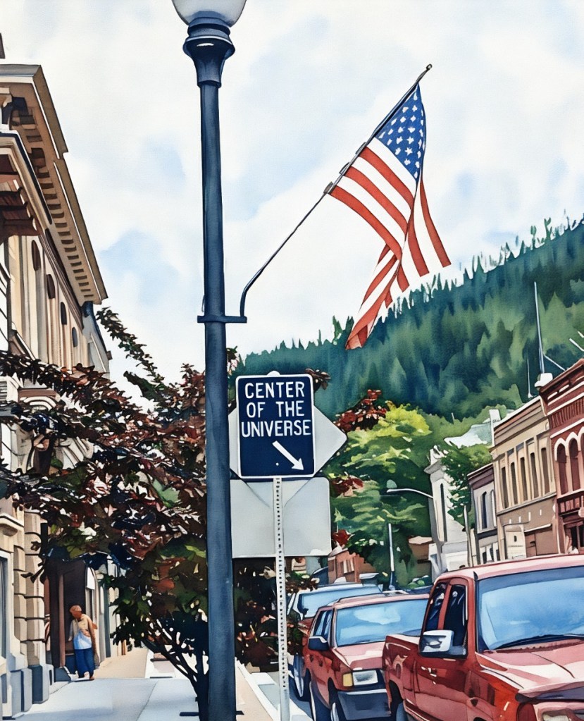 I came across this sign in Wallace Idaho on June 6, 2009. I’m pretty sure it was made in jest. Wallace is a pretty place but the center of the universe?