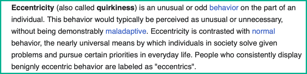 Before I answer that, here is what Google’s AI says about being “sort of” eccentric: