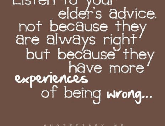 This quote could be a byline for RJsCorner. I have made more than my fair share of being wrong in my life. That seems to be my main specialty. In fact, one of my remaining themes in life is around … Continue reading Listen To Your Elders