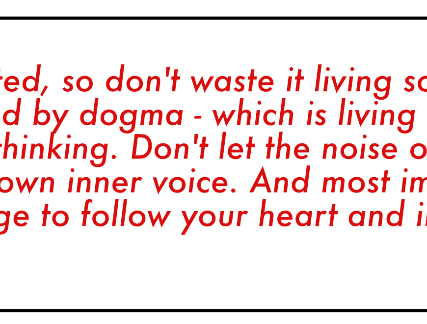 Steve Jobs was one of the founders of Apple Inc. He died at a relatively early age of 56 due to pancreatic cancer in 2011. Steve was certainly one of the pioneers of 21st century technology. I love the quote from him that people don’t know what they want until you give it to them. I have been intimately enmeshed in Apple products from the … Continue reading Steve Jobs – Your Time Is Limited…