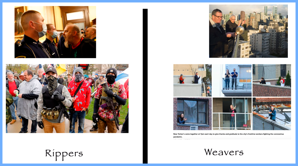 I love David Brooks’ recent NYT article defining weavers and rippers. It totally describes our current times. That is what this post is all about